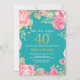 Floral Surprise 40th Birthday Gold and Teal Invitation