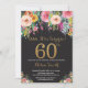 Floral Surprise 60th Birthday Invitation for Women. Watercolor Floral Flower. Black and Gold Glitter. Pink, Yellow, Orange, Purple Flower. Adult Birthday. For further customisation, please click the "Customise it" button and use our design tool to modify this template.
