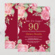 Floral Surprise 90th Birthday Gold Burgundy Red Invitation