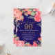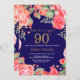 Red Floral Surprise 90th Birthday Invitation for Women. Watercolor Botanical Floral Flower. Gold Glitter. Pink Peonies Floral Flowers. Adult Birthday. Navy Blue Background. For further customisation, please click the "Customise it" button and use our design tool to modify this template.
