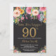 Floral Surprise 90th Birthday Invitation Gold