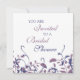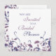 Bridal shower invitations in elegant purple, white and dark blue swirly floral design, elegant and feminine, customisable with your shower details. Also available in thank you cards and invitations for the bridal party.
