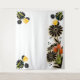 This tapestry design showcases a captivating blend of black daisies, set against a delicate background. A trio of vibrant orange and yellow tulips adds a burst of colour, creating a dynamic contrast. The interplay of light and shadow brings depth and dimension to the floral elements, making this a striking piece for any room.
