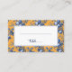 This is a charming and elegant table number card featuring a vibrant orange background adorned with intricate blue floral patterns. The central white space provides an inviting area for personalisation, perfect for adding your own touch to wedding or event decor. The delicate script font adds a sophisticated flair, making it both functional and aesthetically pleasing. Ideal for creating a cohesive and stylish theme at any gathering.