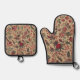 Floral Tapestry Needlework Flower Art Oven Mitt & Pot Holder Set