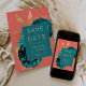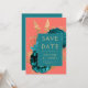 Floral Teal Coral Gold Wedding Save the Date Invitation
