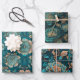 Floral Teal Wrapping Paper Flat Sheet Set of 3