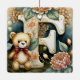 Delicate blooms in soft hues intertwine with the graceful lines of a classic letter , while a plush teddy bear adds a touch of whimsy to this timeless piece. This artwork exudes an air of sophistication and warmth, making it a treasured addition to any decor.