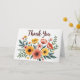 Delicate petals and lush greenery dance across this elegant Floral Thank You Card, designed to convey heartfelt appreciation with a touch of natural beauty. The front features a whimsical arrangement of watercolor florals—think soft blush roses, sunny daisies, and trailing vines—set against a crisp, creamy background for a timeless, sophisticated look.P erfect for post-wedding thanks, celebrating a gift, or simply reminding someone how much they’re cherished, this card pairs thoughtful design with eco-conscious craftsmanship. Printed on premium, textured paper made from sustainable materials, it comes with a matching envelope lined with a subtle floral pattern.