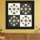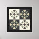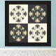 A symmetrical floral pattern repeats in four quadrants, contrasting creamy beige and dark grey coloured square tiles. The design features intricate, stylised leaves and petals in muted green colours.