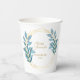 A beautiful bridal shower paper cup in a blue and gold floral design.