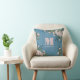 Pretty pink rose floral pillow with a typography design and elegant cute, calligraphy, simple monogram, with a pink and blue, vintage, rose, personalised with name and monogram initial