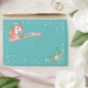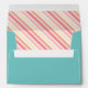 Adorable turquoise envelope featuring pretty flowers and a unicorn by a pink ribbon reading Kindly Deliver To in grey letters. Add your name and return address on the flap. The lining features a striped pattern in rosy colours. Perfect for birthdays, birthday parties, baby showers, and other cute events!