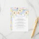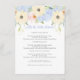 Sweet spring flower bouquet with pink roses, blue hydrangeas, purple and yellow flowers on a watercolor blue background. Elegant modern script typography with delicate swirls elements. Soft pastel shades of yellow, blue and pink are the main colours of this wedding suite. Personalise the text, add wedding information and make this invitation yours.
