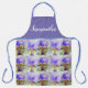 Floral Viola Violas Watercolor Painting Woman's Kitchen Apron, with a fully customizable name. Designed from my original garden photo & writing.