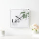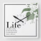 This wall clock has a simple design that packs a wallop. The circle of numbers is small and unobtrusive so the "life" quote takes centre stage. The quote reads "Life is not about waiting for the storm to pass, it's about learning to dance in the rain. Which seems to be a great bit of advice in today's world. The top corner has a printed image of a bunch of hand painted violets. The white violets on the white background make a subtle eye-catching statement. The simple design makes it a perfect fit for any room in your home.