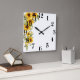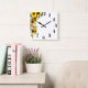 This acrylic wall clock is shown with a lovely sunflowers art print.