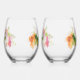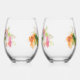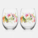 Floral Water Paint Print Stemless Wine Glass