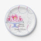 A beautiful bridal shower paper plate in a pink watercolor floral with a blue ring around the outside edge.