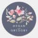 Floral Watercolor Navy Pink Wedding Classic Round Sticker