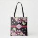 Floral Watercolor Peony Lily Personalised Black Tote Bag