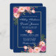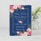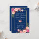Watercolor Floral Pink Blush Blue Stripes Wedding Invitation Card - Blue Back
