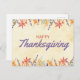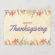 This beautiful Thanksgiving postcard features a vibrant floral watercolor design in shades of purple and cream. The delicate flowers and autumnal berries create a lively yet elegant border that frames a warm "Happy Thanksgiving" message. The soft, textured background adds a rustic charm, making this postcard a lovely way to share your gratitude and holiday cheer with loved ones.