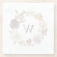 Floral Watercolor Wreath Monogram White Glass Coaster