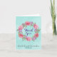 A wedding thank you card with a message inside which can be easily personalised to say whatever you like or leave as is. Personalise with the bride and groom's names on the front and their wedding date too. A beautiful botanical themed illustration with a circular wreath of pretty watercolor flowers in pink and purple with green leaves in between. The floral design is made up of pink peonies and purple anemones. The background is a soft mint green watercolor texture.