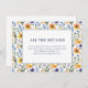 This is a floral style image featuring a charming and elegant wedding details card. The central white panel, framed by a vibrant array of flowers in shades of orange, yellow, purple, and blue, exudes warmth and sophistication. Perfect for guiding guests to your wedding website for more information on accommodations and additional details, this design captures the essence of a beautiful garden celebration. It inspires feelings of joy and anticipation, making it an ideal addition to any wedding stationery suite.