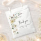Floral Wedding Favour Bags. This elegant whimsical wildflower thank you favour bag features beautiful hand-painted watercolor blush pink, dusty blue, and sage green pressed flowers with black text on a white background. Find matching items in the Wildflower Wedding Invitations | Pressed Flowers Collection.