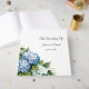 This wedding guest book is shown in lovely hydrangeas print; text is shown in a slate grey colour.