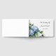 This wedding guest book is shown in lovely hydrangeas print; text is shown in a slate grey colour.