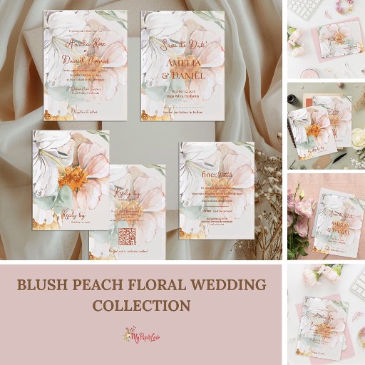 Blush Peach Floral Wedding Invitation SuiteDesigned by Mypaperlove Designs