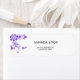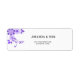 Purple flower design on personalised wedding labels