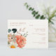 This gorgeous wedding RSVP response card features a lovely creamy ivory background and text in rich dark ochre. Text include reply by date, 3 menu choices and optional song request. A joyful display of floral blooms at the front of the card adds a youthful elegance and style to your wedding stationary. The back includes couple initials.