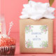 The size is perfect and the design has a softness with the beautiful flowers around the edges. The black lettering on the white background is sharp. It stands out beautifully. I love the Mixture of font styles as it catches the eye.