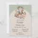 Quinceanera Invitation to church ceremony and reception, with bohemian floral cowgirl boots, roses and country flowers. The design has vintage and classic lettering, set within an elegant modern arch shape, on a base colour of sage green and neutral beige. Perfect for boho floral, western, equestrian, rodeo and rustic country themes at any time of the year. For coordinating invitations, stationery, gifts and party decor, please browse my Boho Floral Cowgirl Boots Quinceanera Collection.