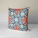 Spice up your space with the lively Floral Whirlwind in Coral pillow. The coral-red base bursts with intricate blue and yellow floral patterns, offering a fun and fresh vibe. Great for adding a punch of personality to contemporary or tropical-themed rooms.