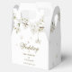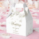 Elegant floral wedding favour box featuring delicate white blossom with your event details set in chic gold typography. You can personalise with your own thank you message on the reverse. A perfect way to say thank you to your guests! Designed by Thisisnotme©