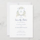 Floral White Dusty Blue Crest Save the Date Wedding Invitation. Traditional Wedding Invitation. White Flowers Greenery Wedding Monogram Crest Save the Date Card