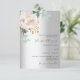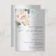 A faux silver looking background. A white flower, florals, eucalyptus greenery. Personalise and add your names and details.