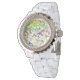 This cute Floral White Watch uses the Floating Effect on an original photo taken of yellow, orange, and pink tulips at the Ted Ensley Gardens.