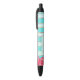 Floral with Aqua and Golden Stripes Black Ink Pen