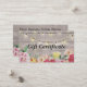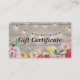 Elegant Vintage Modern Chic String Lights and Floral with Natural Rustic Wood Texture Background Salon or Boutique Gift Certificate Business Card Template.