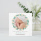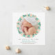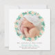 This design features a pink and teal floral wreath surrounding a photo of your new bundle. Baby's birth details sit below the wreath. Graphics ©Lilian Ellaboudy Design