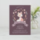 Beautiful deep purple invitation with an adorable fox and floral with gold accents.