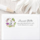 Pretty purple peonies wreath with a white bunny rabbit return address label for a bridal shower, baby shower, birthday or everyday correspondence.