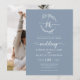 Floral Wreath Dusty Blue Monogram Photo Wedding Invitation