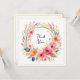 Express your appreciation in floral style, with a card featuring this pretty wreath design. This beautiful flat card displays a colourful wreath of flowers and foliage, with the words 'Thank You' in elegant script typography, and a faux gold square surround. The reverse side also has the same gold square surround, and a charming floral display in the lower right hand corner. The rest of the reverse side is plain white for you to add your own handwritten message.
